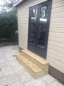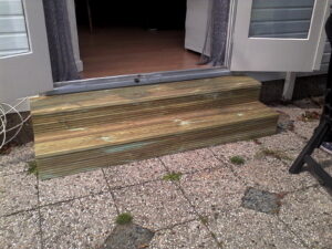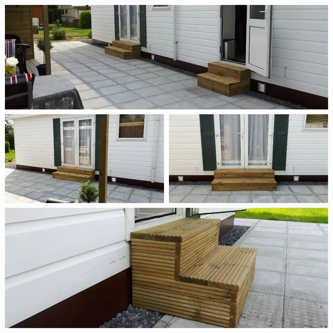 Deze set bestaat uit een opstap van 100cm breed(max) en een opstap van 180cm breed(max) maximale hoogte 40cm pak je voordeel met deze set!